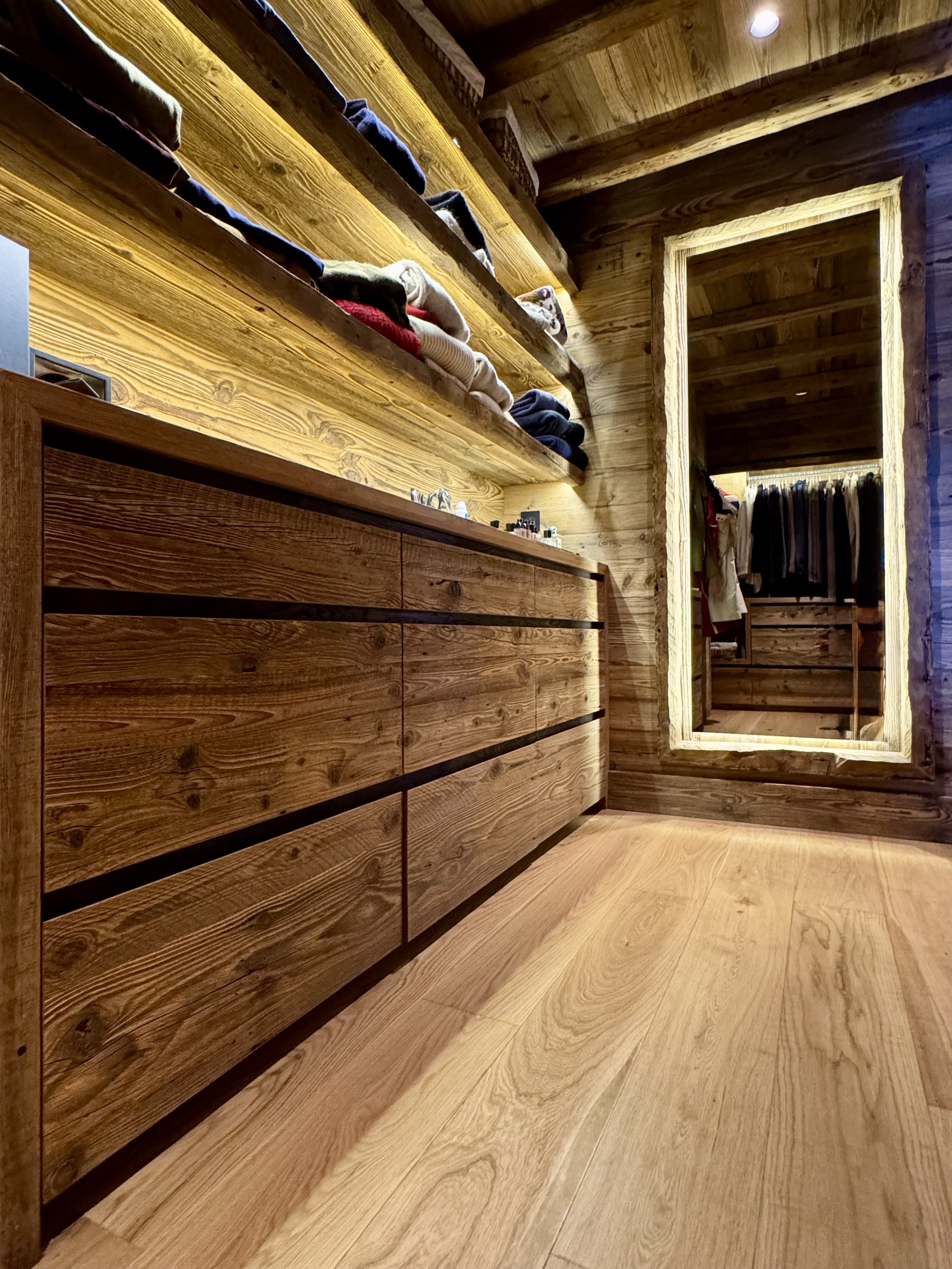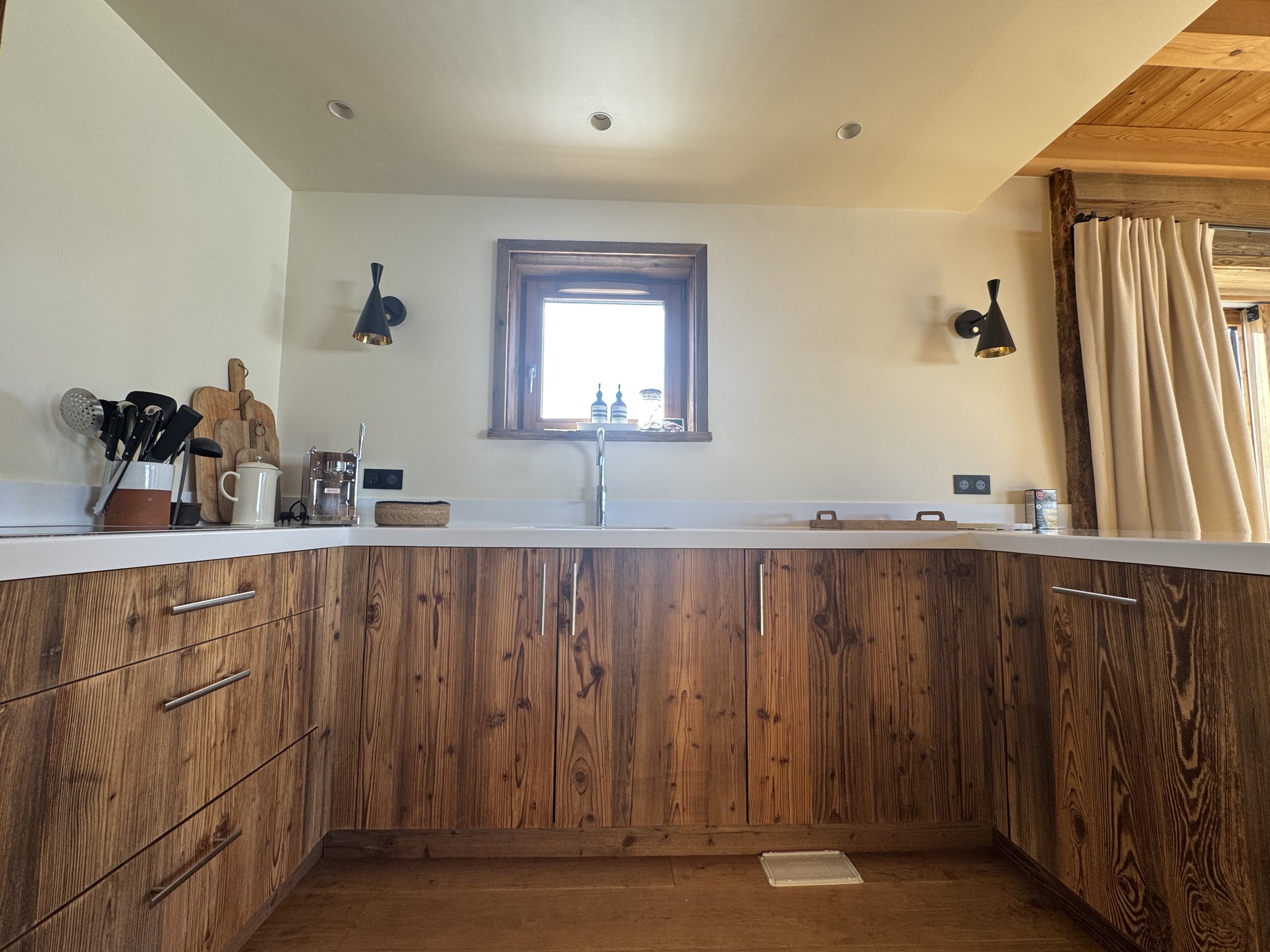 Description: Rénovation complète d'un chalet existant, conservant le charme du bois ancien et offrant des espaces conviviaux pour la famille.